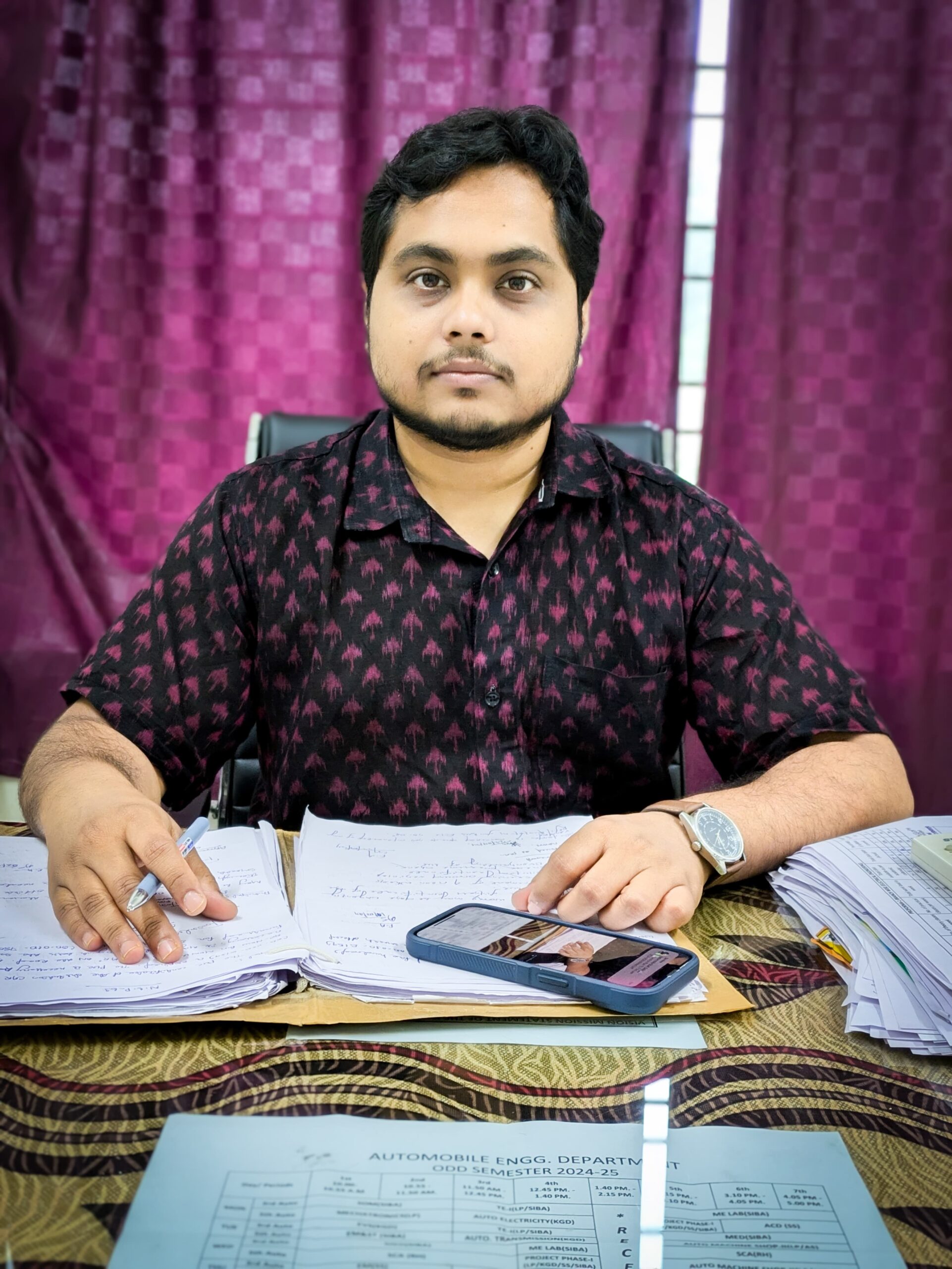 Automobile Engineering Department is one of the core department of the institution which started functioning in the year 2013(Establishment year) with intake capacity of 30 students. It offers diploma program and has been focusing on good quality teaching along with integrated laboratory experiments. The course has been attracting good students from inception and is becoming increasingly popular. Department has well- developed infrastructure and well equipped laboratories like Automobile engine laboratory, Automobile Machine-Shop, Automobile Electrical system laboratory & Automobile Workshop.With the help of multimedia, interactive sessions, industrial visits, expert lecturers, teaching- learning process is enhanced at department. Passed-out students from this department are most eligible candidates to be placed in various Govt. sectors like Motor Vehicle Inspector(MVI), DRDO, Indian Railways, Indian Airforce, Ordinance Factory,Technician post in Indian Army, Public sectors like SAIL,MCL and Private Sectors like Maruti Suzuki ,TATA Motors ,Bajaj Motors , L&T etc.